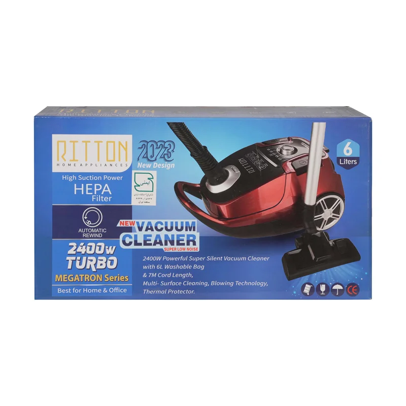 جارو برقی مگاترون محصول جدید گروه لوازم خانگی ریتون می باشد که با طراحی بروز و ظاهری متفاوت با قابلیت های روز دنیا به بازار عرضه شده است. موتور 2400 وات این جارو قابلیت مکندگی صد در صدی تمام سطوح را داراست و با قابلیت تنظیم بر روی 5 حالت مختلف این امکان وجود دارد تا تمامی سطوح از پاک کنندگی صد درصدی برخوردار شوند. قابلیت ویژه بعدی این محصول مکانیزم سیستم دمندگی (blowing) می باشد که میتوان با این قابلیت با دمش باد کنج های غیر قابل دسترس یا غبار و خرده ریز های مورد نظر را با جریان باد هدایت نمود و سپس اقدام به پاکیزگی کرد. این جارو مجهز به فیلتر HEPA است که تضمین کامل عدم خروج گرد غبار می باشد. مخزن جارو 6 لیتری است. نشانگر LED جهت اخطار عدم عمل کرد صحیح مکش جارو، فیوز حرارتی موتور جهت عدم اجازه داغ شدن موتور و سوختن، سیم برق 10 متری، سیم جمع کن خودکار، امکان استفاده ی کیسه ی قابل تعویض پارچه ای و کاغذی، 3 برس مختلف برای سطوح پرده و مبلمان و …، موتور کم صدا قدرتمند، لوله کنفی با لوله ی قابل تنظیم در ارتفاع های مخلف دو تکه همگی از ویژگی های منحصر به فرد جاروی مگاترون می باشد.